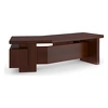 Покрытие – шпон файн-лайн цвет «дуб шоколад» с тангенциальным рисунком позволяет избежать проблемы разноотеночности, сохраняя высокие потребительские свойства, ощущение и внешний вид натурального материала. Кромка столешниц письменных столов – массив. Шпоном покрыты не только лицевые поверхности, но и полки и задние стенки шкафов, внутренние поверхности опор.Боковины тумб, шкафов и креденций выполнены из МДФ, фрезерованной по периметру, образуя мягкую линию профиля.