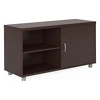 Это выделяет FLASH из множества других кабинетов, придавая ему индивидуальность. Два цвета, в которых представлен кабинет – дуб и rover cafe (темный дуб) прекрасно сочетаются с опорами каркаса в цвете серебристый металлик.