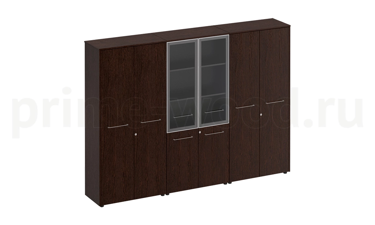 Шкаф комбинированный высокий (закрытый + стекло + одежда) REVENTON 274x46x196 арт. МЕ 376