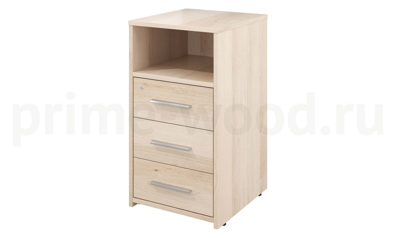 Каркасы ящиков: столярный ящик, дно ящиков: ХДФ 3,2 мм., направляющие роликовые: металл, регулировка по высоте (тумба приставная): да, замок (верхний ящик): да.